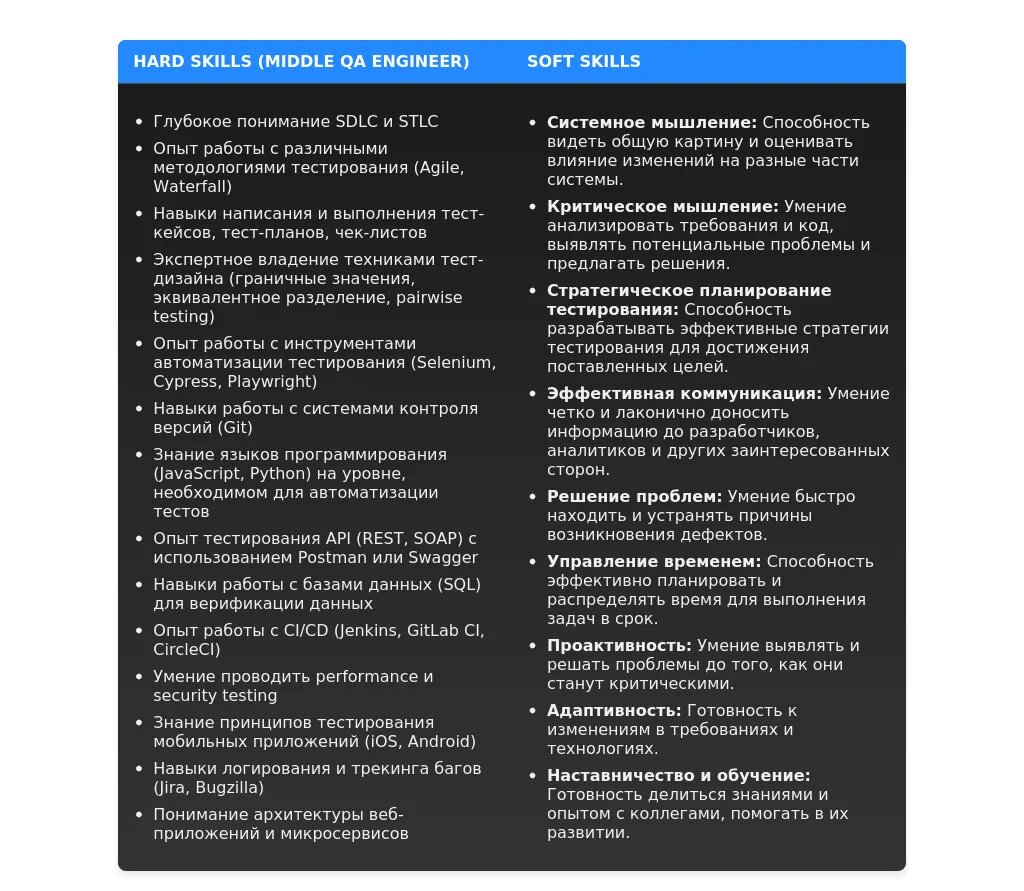 Адаптация раздела "Навыки" Middle QA Engineer