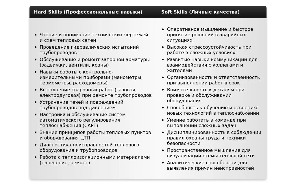 Например, если в вакансии указано "знание принципов работы тепловых сетей", добавьте этот навык в свой список.