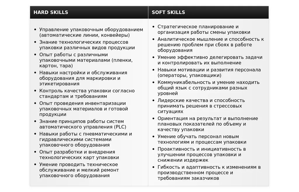 - Пищевое производство: "соблюдение стандартов HACCP", "контроль качества пищевой упаковки", "работа с термоусадочным оборудованием".