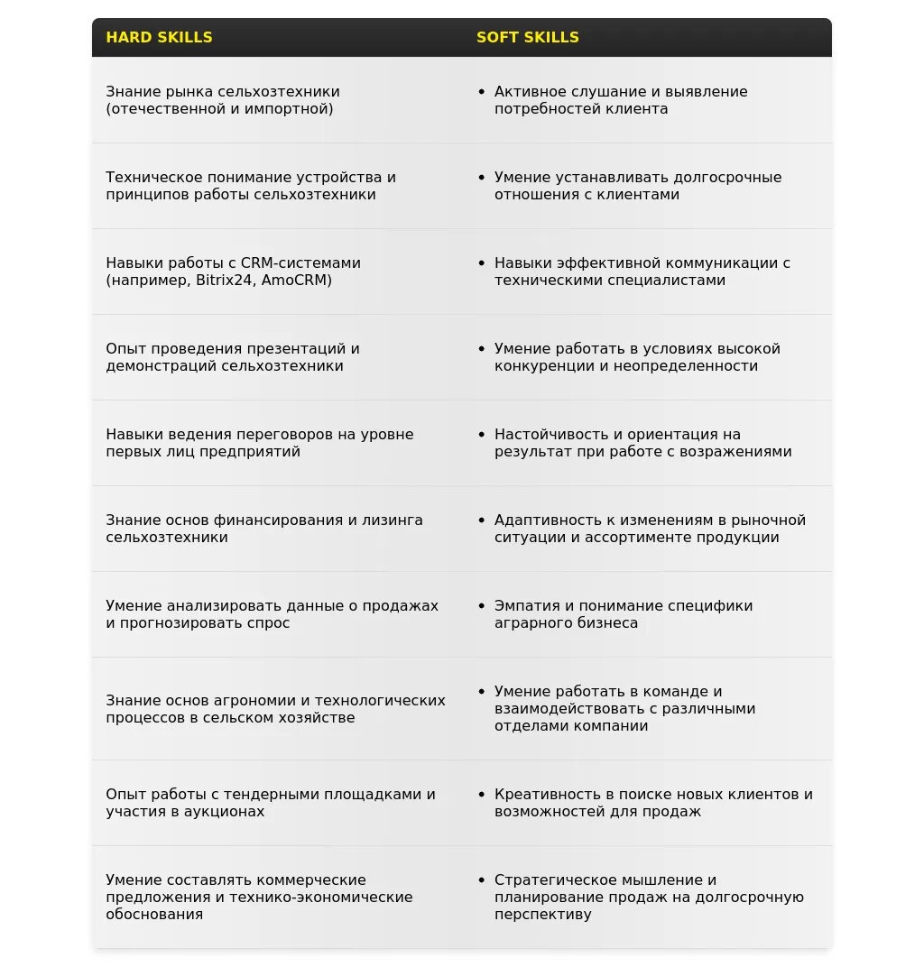 Ключевые навыки и компетенции, релевантные для продаж сельхозтехники.