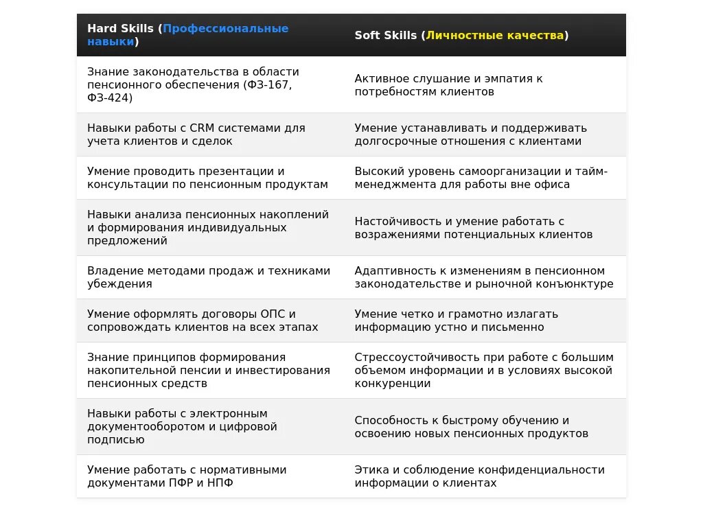 - Специалист по пенсионному обеспечению (разработка продуктов) – Акцент на навыках разработки и продвижения.