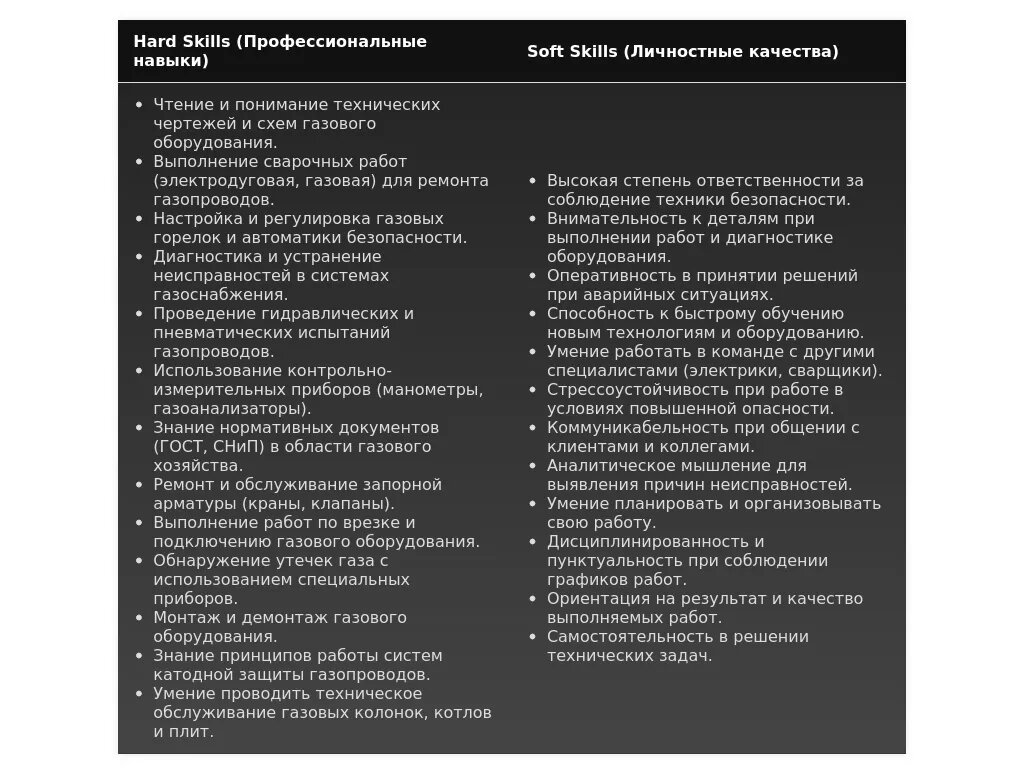 Адаптация раздела "Навыки" для слесаря по газовому оборудованию