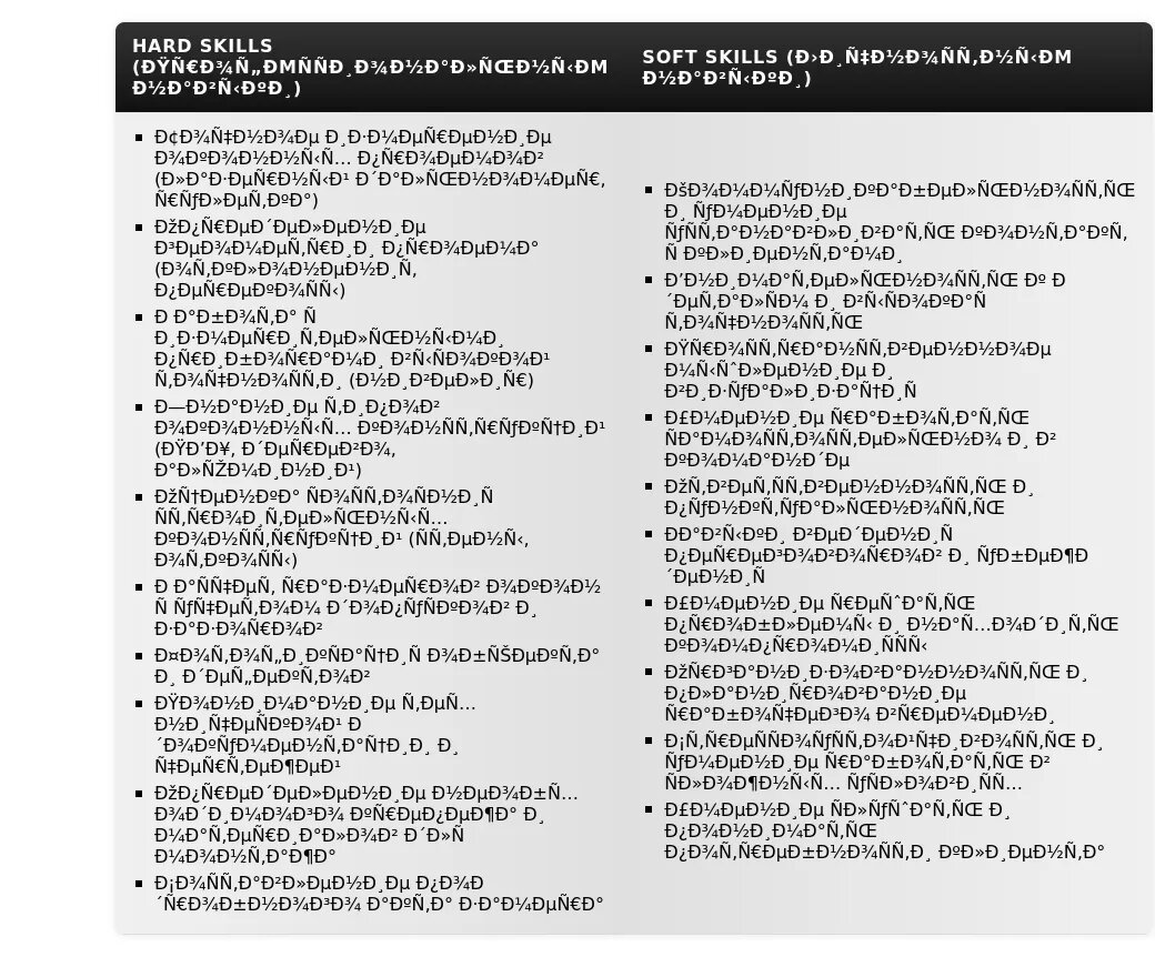 - Выделите ключевые навыки: Поставьте в начало списка те навыки, которые наиболее важны для работодателя.