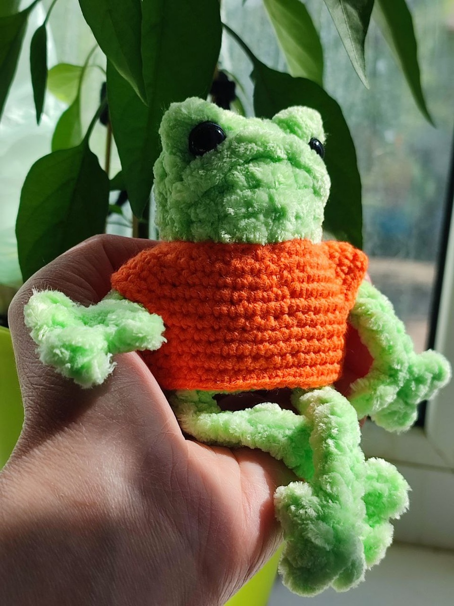 Смотрю на них, на готовых впрыгнуть в вагон девчонок от тридцати до шестидесяти... А почему это мне позавчера казалось, что они как щенки в зеркальной комнате? Ничего подобного. Ну они же все-все - разные! Вика - командир и запевала, и ледокол "Ленин" просто по количеству производимой ею энергии, Надежда - удачливая и неунывающая, да и неутомимая, всё время приплясывает, хоть под "Буратину" на набережной, хоть сейчас вот. Василиса - искусница, у нас же у каждой теперь есть вязаный пельмень и лягушка-путешественница... Лягушка от Василисы в майке от Кати.