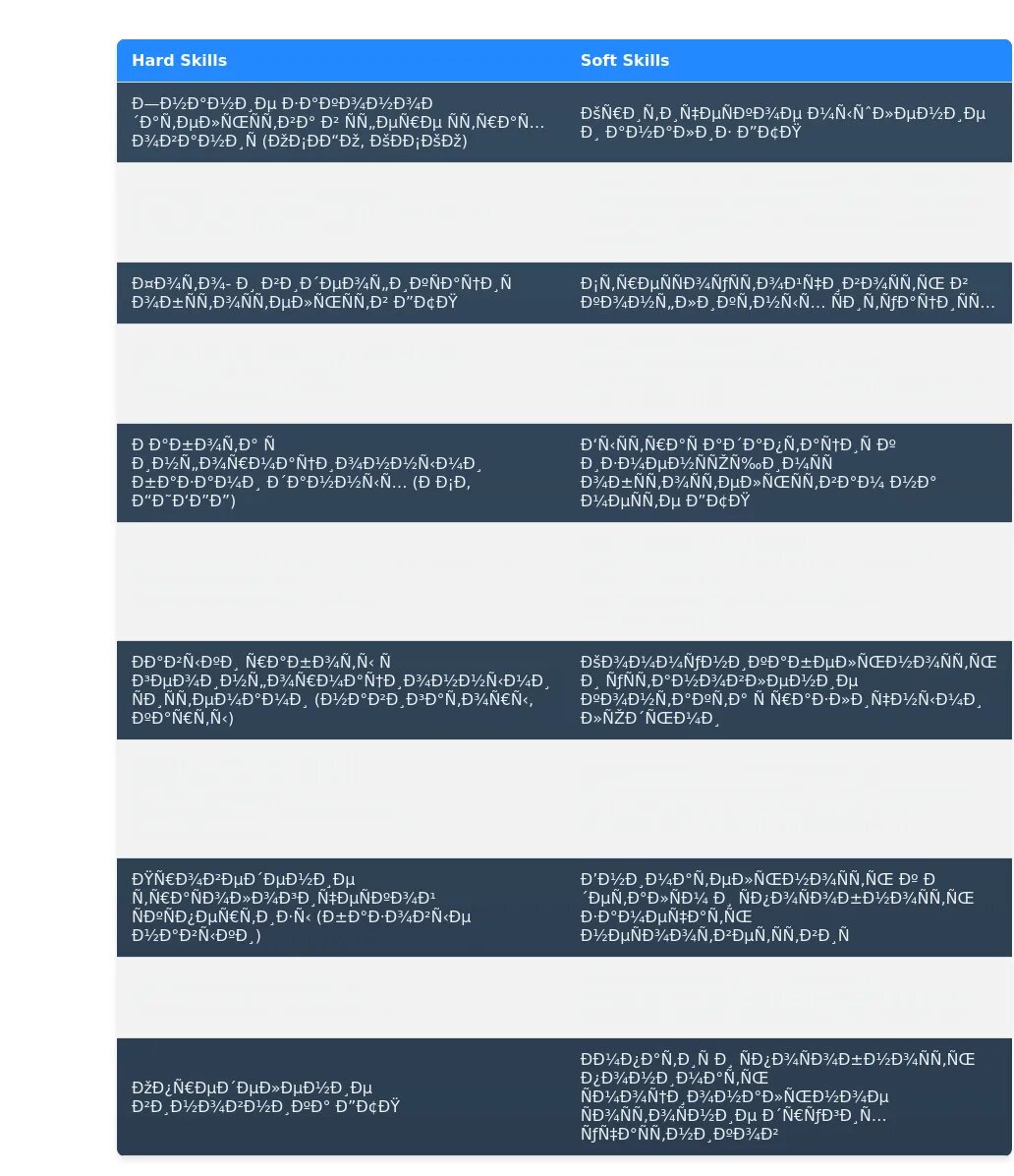 - Сгруппируйте навыки по категориям: Сгруппируйте навыки по категориям (например, "Профессиональные навыки", "Навыки работы с ПО", "Личные качества").