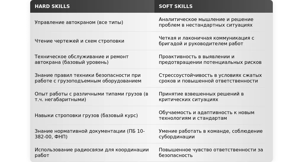 - Что обязательно включить:Ключевые навыки и компетенции, релевантные для профессии автокрановщика.