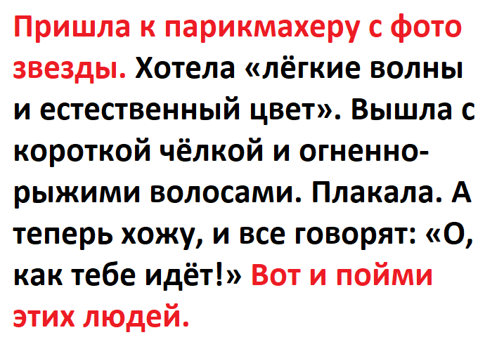 Поехали с парнем знакомиться с его бабушкой в деревню. Я вся такая городская, на каблуках и с укладкой, вышла из машины и тут же утонула в грязи по щиколотку. Бабушка посмотрела, хмыкнула и говорит: «Невестка, значит? Ну, хоть удобрять умеешь». © Подслушано / VK 2.