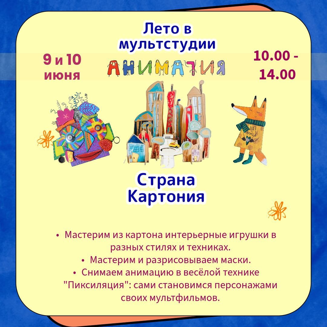 Новая творческая неделя будет короткой. Всего два дня 9 и 10 июня. Что же будем делать? 👉Мастерить картонные интерьерные игрушки в разных стилях и техниках. 👉Делаем картонные декорации. 👉Мастерим и разрисовываем маски. 👉 Снимаем анимацию в весёлой технике "Пиксиляция": сами становимся персонажами своих мультфильмов.