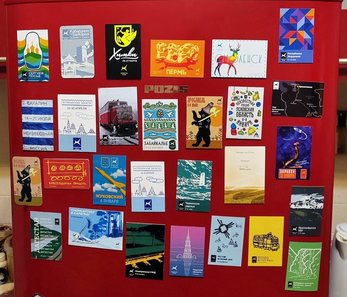 Это холодильник одного из наших постоянных гидов и путешественников. Почти на каждый наш выезд мы делаем небольшой сувенирный набор, над дизайном которого паримся сами. Это уникальные магниты, их нигде не купить, можно только получить на нашем выезде. Верхний ряд: Сергиев Посад, Новогодняя Кабардино-Балкария, Химки, Пермиский край, Смоленск, Мордовия Второй ряд: Сахалин, Астраханская область, Апшеронская УЖД, Забайкальский край, Ярославль, Псковская область, УЖД Архангельской области Третий ряд: снова Ярославль, Новгородская область, Жуковский, снова Астраханская область, Черекское ущелье КБР, Калмыкия, Боровск Нижний ряд: Дагестан, карельский сноукайтинг, Апшеронская УЖД, Тверская обалсть, Чукотка, Алапаевская УЖД, Приэльбрусье, Чегемское ущелье Какой больше нравится?
