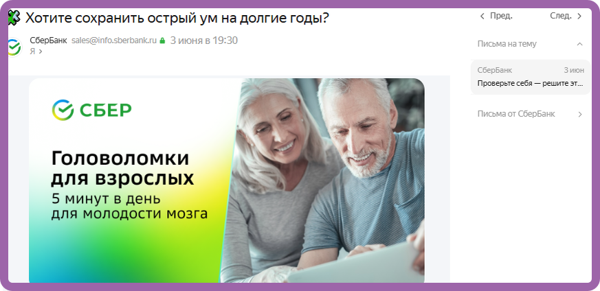 «Сбер» - махина! «Сбер» могуч и бессмертен, как Кощей! Помните юбилейную речь? (Ссылка внизу.) Там он утверждал, что это именно он придумал всё на свете (кредит, доставку и т.д.) и на бессмертие своё намекал. Говорил, что родился аж 180 лет назад. То есть смог пережить и царскую власть, и советскую, и даже отсутствие внятной власти в девяностые. Другие вымерли и позакрывались, а он всё так же молод, свеж и креативен. А еще «Сбер» очень многогранен. Вернее, многолик. И не только в том смысле, что и банк, и магазин, и доставка. Он даже мозги нам, старикам, вправить обещает. На днях, например, открываю почту и вижу: «Хотите сохранить острый ум на долгие годы?» И решение: «Логические загадки для тренировки мозга у взрослых». Ну, думаю, сейчас потренируюсь. В «Сбере», говорят, работают лучшие умы. Значит, и загадки их должны быть более вразумительными, чем те, что гуляют в Интернете. Есть в Сети такие головоломки, у которых либо с условием непорядок, либо верные ответы не вполне верн
