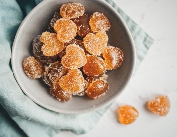 - Обваляйте мармелад в сахарной пудре и подавайте.