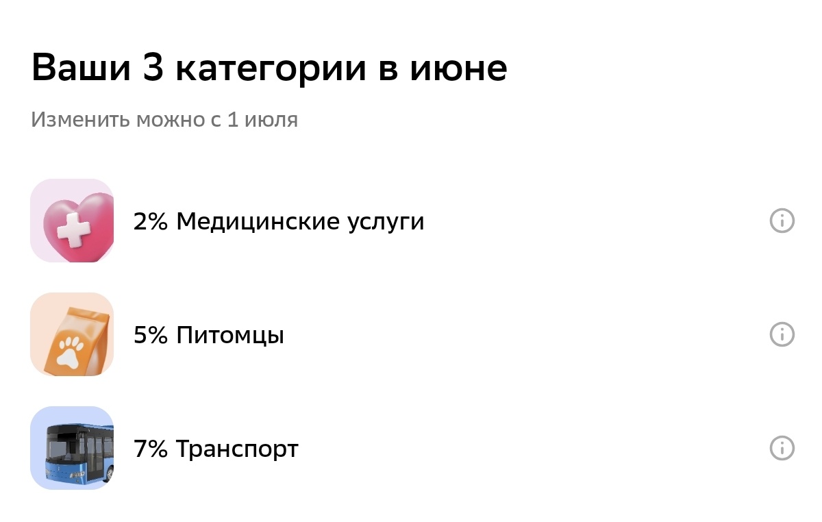 Давно хотела написать про это отдельную статью, ну вот и представилась такая возможность. Сына свекровь увезла в сад до воскресенья. И у меня появилось свободное время. В планах помыть везде окна в вечером сходить в магазин за одеждой, пойду одна,муж сегодня спит долго у него ночная смена..... Это я начала писать вчера, но так и не успела дописать, подруга ошарашила новостью что родила дочку, хотя дата родов была на конец июня. В суете и перезвонах подругам, забыла про статью дописываю её сегодня) Сейчас напишу про кэшбэк на Июнь, где и в каких категориях он у меня есть. У меня 4 банковские карты таких банков как Сбер, ВТБ, Альфа-Банк, Газпром банк. Пользуюсь категорией транспорт и медицинские услуги,в салонах оптики тоже действует этот кэшбэк, у сына как раз заканчивается жидкость для линз. Одно плохо, что кэшбэк не рублями а спасибками. В ВТБ пользуюсь категорией продукты, кафе и рестораны. За май удалось заработать 1282 рубля, выплата по ней уже пришла. В Альфе выбрала вот та