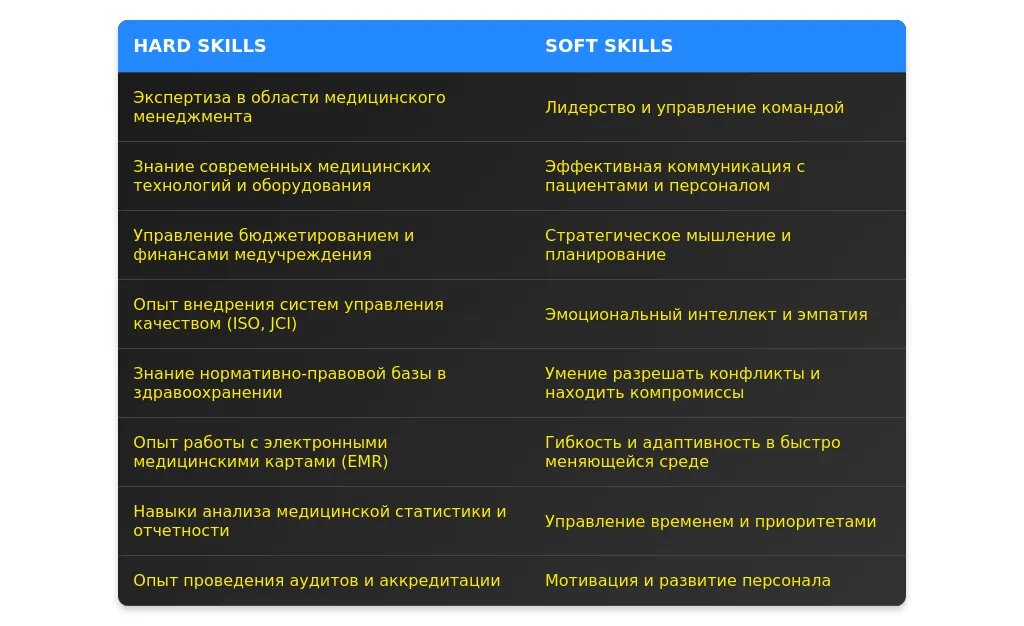 - Умение адаптироваться к изменениям в медицинской отрасли