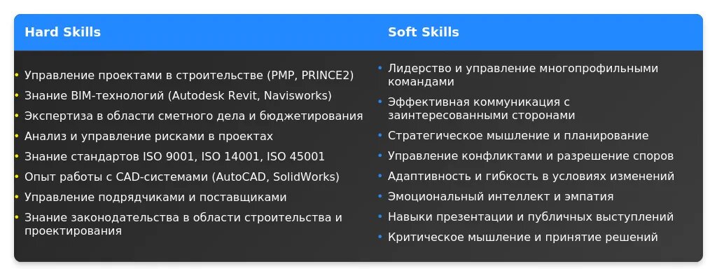 - Балансируйте между широтой и глубиной: "Знание современных методов управления проектами и глубокое понимание строительных процессов."