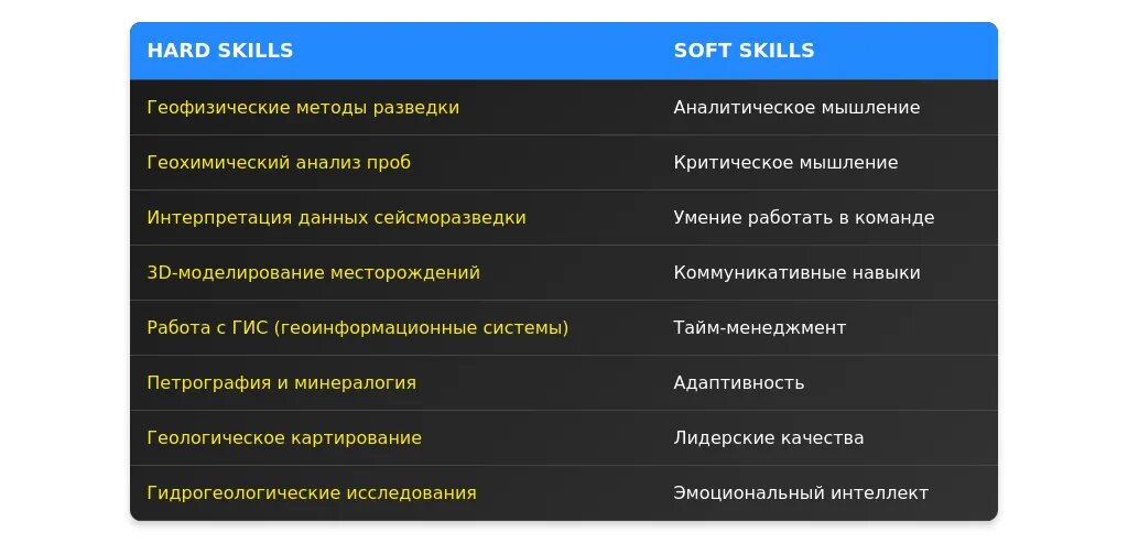 Аналитическое мышление: успешно интерпретировал сложные геофизические данные для прогнозирования месторождений.