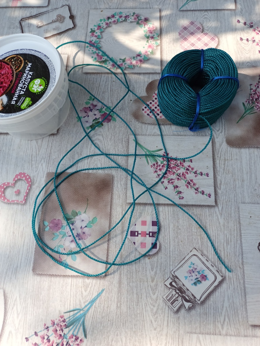Вечная проблема : размотать длинный отрезок шпагата и не нарушить целостность бобины. Решение простое: съели зимой капусту покупную, контейнер помыли, в крышке сделали отверстие, в него шпагат, закрыли. Пользуемся без боязни запутаться.