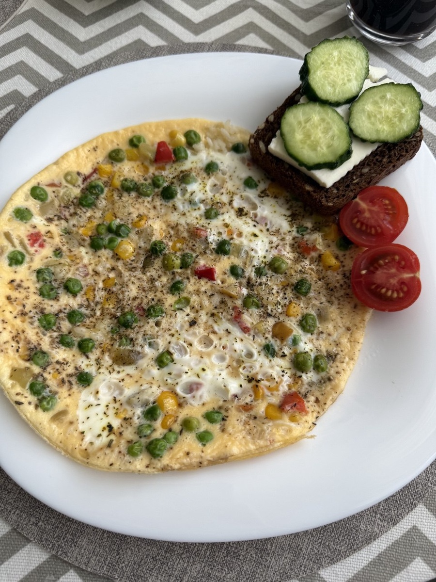 🍳 Идеальный завтрак для похудения: омлет с овощами, цельнозерновым хлебом и адыгейским сыром