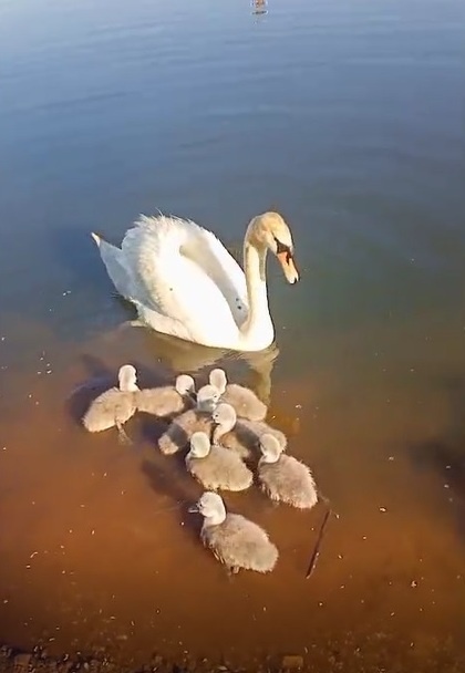 Министерство природопользования и экологии Башкортостана поделилось в своем телеграм-канале трогательным видео из села Ермолаево Куюргазинского района. На кадрах — местные жители, подкармливающие лебединую семью с восемью пушистыми птенцами.