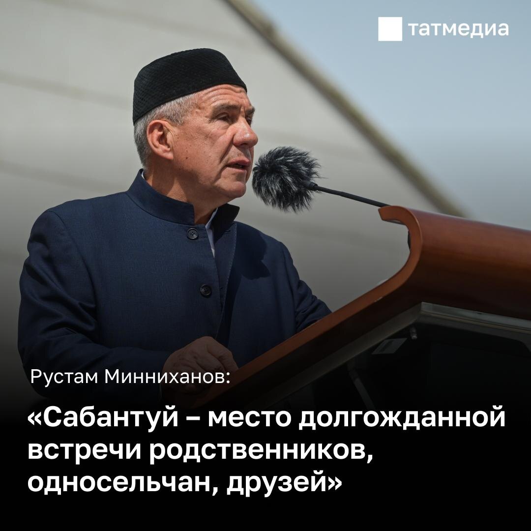 👨🇷🇺 Рустам Минниханов поздравил татарстанцев с татарским народным праздником Сабантуй «Уважаемые татарстанцы! Дорогие друзья! От всего сердца поздравляю с татарским народным праздником Сабантуй! В народной мудрости, передаваемой из поколения в поколение, особое место всегда уделяется ценности трудолюбия и почитанию традиций при достижении поставленных целей. От наших предков мы знаем, что только неустанным трудом можно добиться богатого урожая и открыть новые возможности для дальнейшего поступательного развития. Так было испокон веков и актуально в наше время. И, празднуя Сабантуй, мы прежде всего выражаем большое уважение земледельцам и труженикам села, усилиями которых обеспечивается продовольственное благополучие республики и страны. На протяжении веков яркий, гостеприимный майдан собирает представителей разных возрастов, национальностей и вероисповеданий. Праздник наглядно отражает пример мирного проживания и культурного взаимообогащения жителей многонационального Татарстана