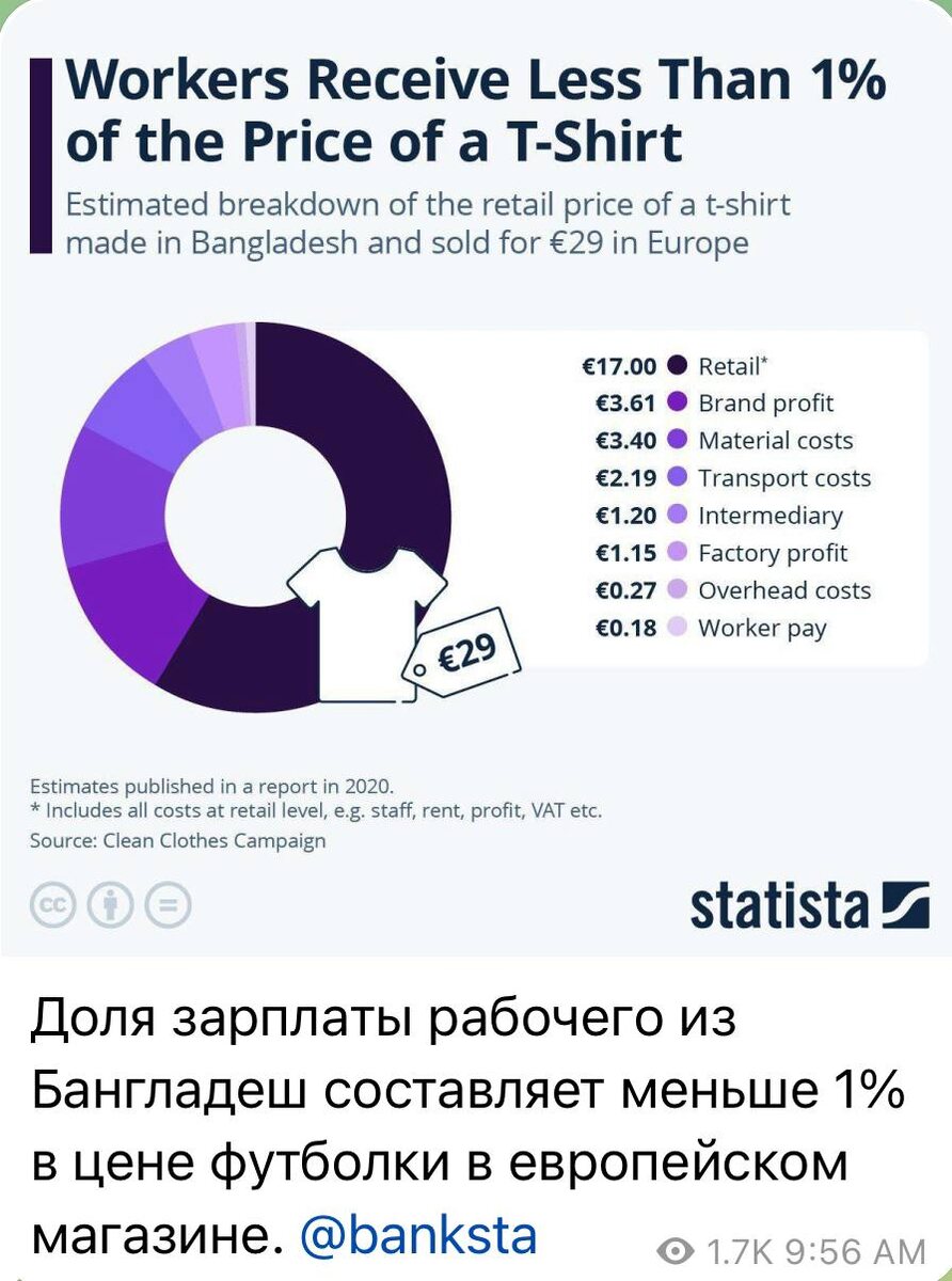 🫰Разложили расходы по статьям на производство одной футболки в Бангладеш