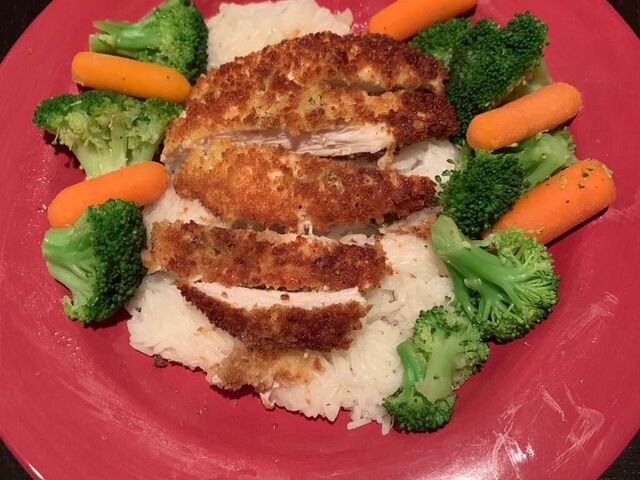 Цыпленок Кацу Это мой семейный рецепт курицы Катсу - жареной курицы в японском стиле. Можно также использовать для приготовления Тонкацу, только вместо курицы используйте свиные котлеты. Подавайте с белым рисом и соусом тонкацу. ⌛ Подготовка: 10 мин. ⏰ Приготовление: 20 мин. 🍴 Количество: 4 порции Ингредиенты ✅ 4 половинки куриных грудок без кожи и костей - отбитые до толщины 1/5.00 см ✅ соль и перец по вкусу ✅ 2 столовые ложки цельной муки ✅ 1 яйцо, взбитое ✅ 1 чашка хлебных крошек панко ✅ 1 чашка масла для жарки или по необходимости. Инструкция приготовления 1. Натрите куриные грудки с обеих сторон солью и перцем. Поместите муку, яйцо и крошки панко в отдельную неглубокую посуду. Обмакните куриные грудки в муку, стряхивая излишки. Окуните их в яйцо, а затем обваляйте в сухарях панко, пока они не будут хорошо обмазаны с обеих сторон. 2. Разогрейте 1/10.00 см масла в большой сковороде на средне-высоком огне. Положите курицу в горячее масло и готовьте по 3-4 минуты с каждой сторо