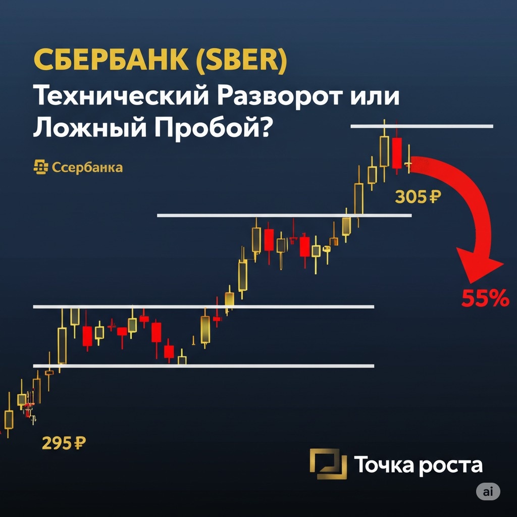 Технический анализ SBER указывает на высокую вероятность тестирования уровня 295-300 ₽ в краткосрочной перспективе. Ключевым фактором станет поведение цены у критической поддержки 305 ₽. Фундаментальные показатели остаются сильными, но краткосрочное техническое давление доминирует.