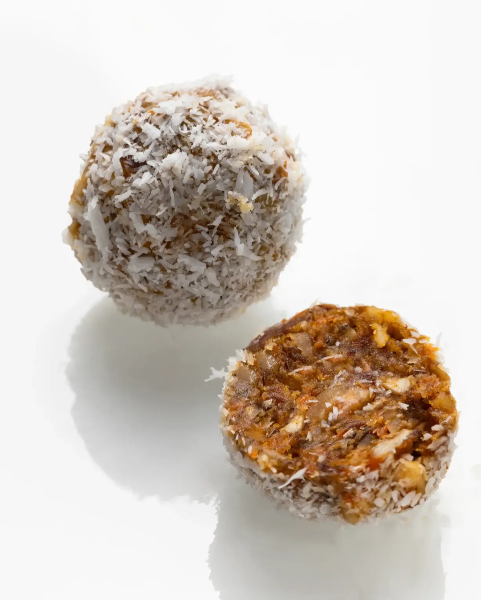 Вам нельзя есть продукты с высоким содержанием сахара, а очень хочется? Эти морковные конфеты без сахара — идеальное решение! Получается лакомство, наполненное натуральной сладостью и полезными ингредиентами. Их легко приготовить, они очень вкусные и идеально подходят для тех, кто хочет побаловать себя, оставаясь при этом здоровым. Однако стоит быть с этим лакомством острожными, так как такие конфеты все равно будут сладкими и очень калорийными. Не более 2 шт. в день. 150 гр. молодой сочной моркови (мелко натертой) 100 гр. фиников без косточек или сушеной клюквы 1 ч. л. цедры апельсина 4-5 шт. кураги 100 гр. ядер грецких орехов (или 3 ст. овсяных хлопьев) 35 гр. сухой кокосовой стружки 0,5 ст. л. молотой корицы молотый мускатный орех на кончике ножа щепотка соли кунжут по желанию Заложить в стакан для блендера морковь, финики, цедру, курагу и орехи. Всыпать корицу, половину кокосовой стружки, мускатный орех и соль. Все измельчить до нужного вам состояния — мне нравится, когда в к