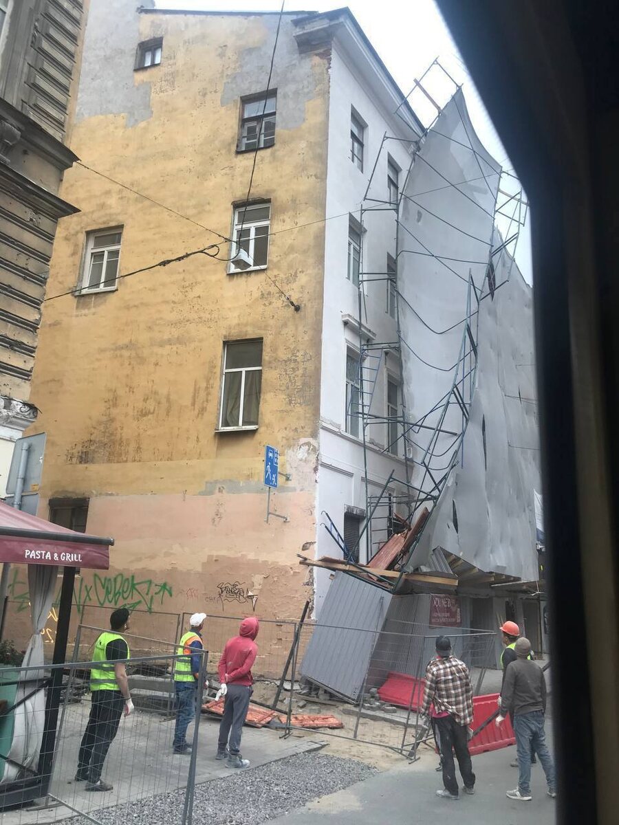 Накануне на Загородном проспекте рухнули строительные леса Из-за инцидента даже на время приостанавливали движение троллейбусов было приостановлено, но позже было восстановлено.