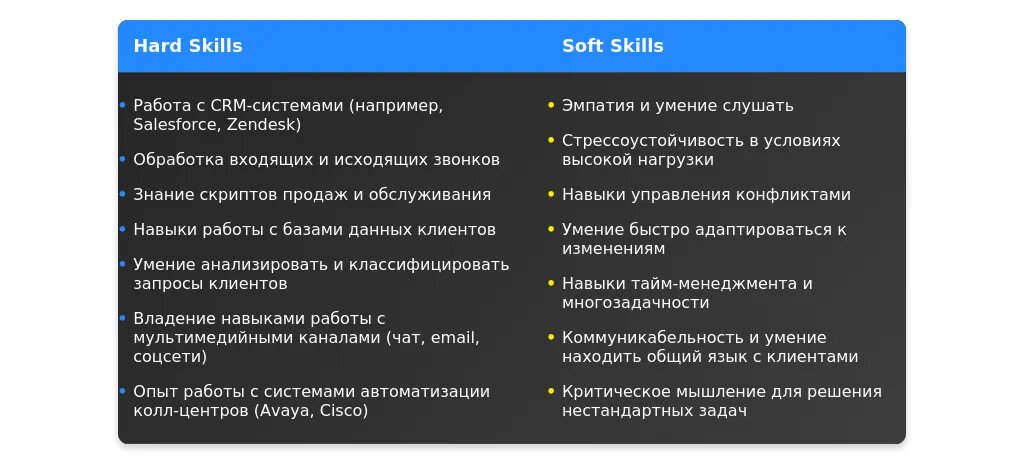 После: "Работа с CRM-системами (Bitrix24, Salesforce), обработка входящих звонков, решение конфликтных ситуаций, стрессоустойчивость."
