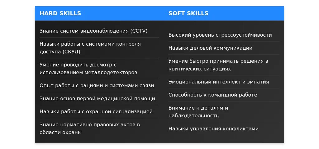 - Релевантность: указаны навыки, важные для охранника.