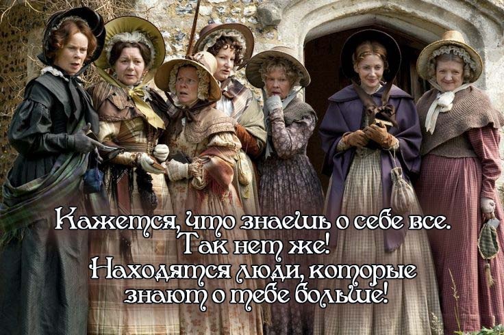 PS Арт из сериала "Крэнфорд" - очаровательный британский мини-сериал пот роману Элизабет Гаскелл, в котором сплетни и пересуды это способ общения местных жителей. Главное соблюдать приличия. Очень рекомендую.