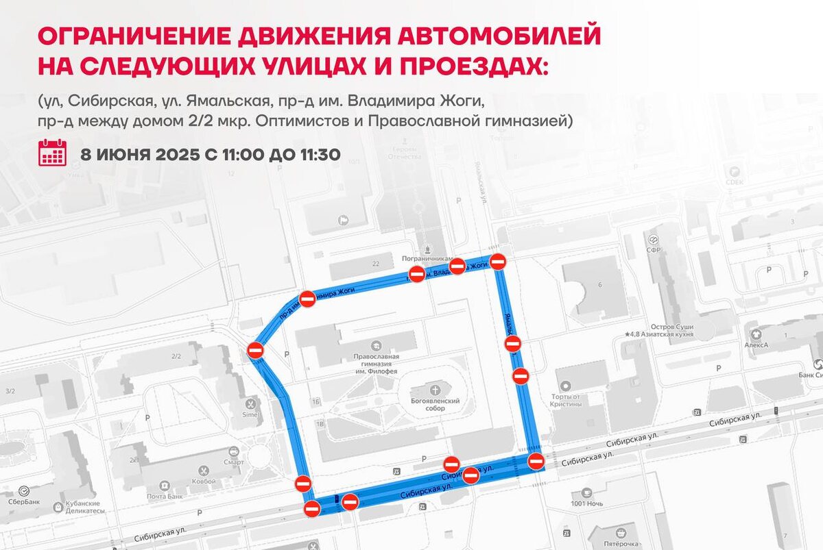 Несколько улиц перекроют во время празднования Святой Троицы в Новом Уренгое Ограничения будут действовать 8 июня в южной части города и районе Коротчаево. Южная часть города (11:00–11:30): 🩵 ул. Сибирская 🩵 ул. Ямальская 🩵 проезд им. Владимира Жоги 🩵 участок между домом 2/2 мкр. Оптимистов и Православной гимназией Район Коротчаево (10:30–11:30): 🩵 проспект Мира 🩵 проезд, замыкающий проспект Мира Планируйте маршруты заранее 😉 📷: Телеграм / НУР. Официально | Новый Уренгой Подписаться | Прислать новость | Дать «буст»