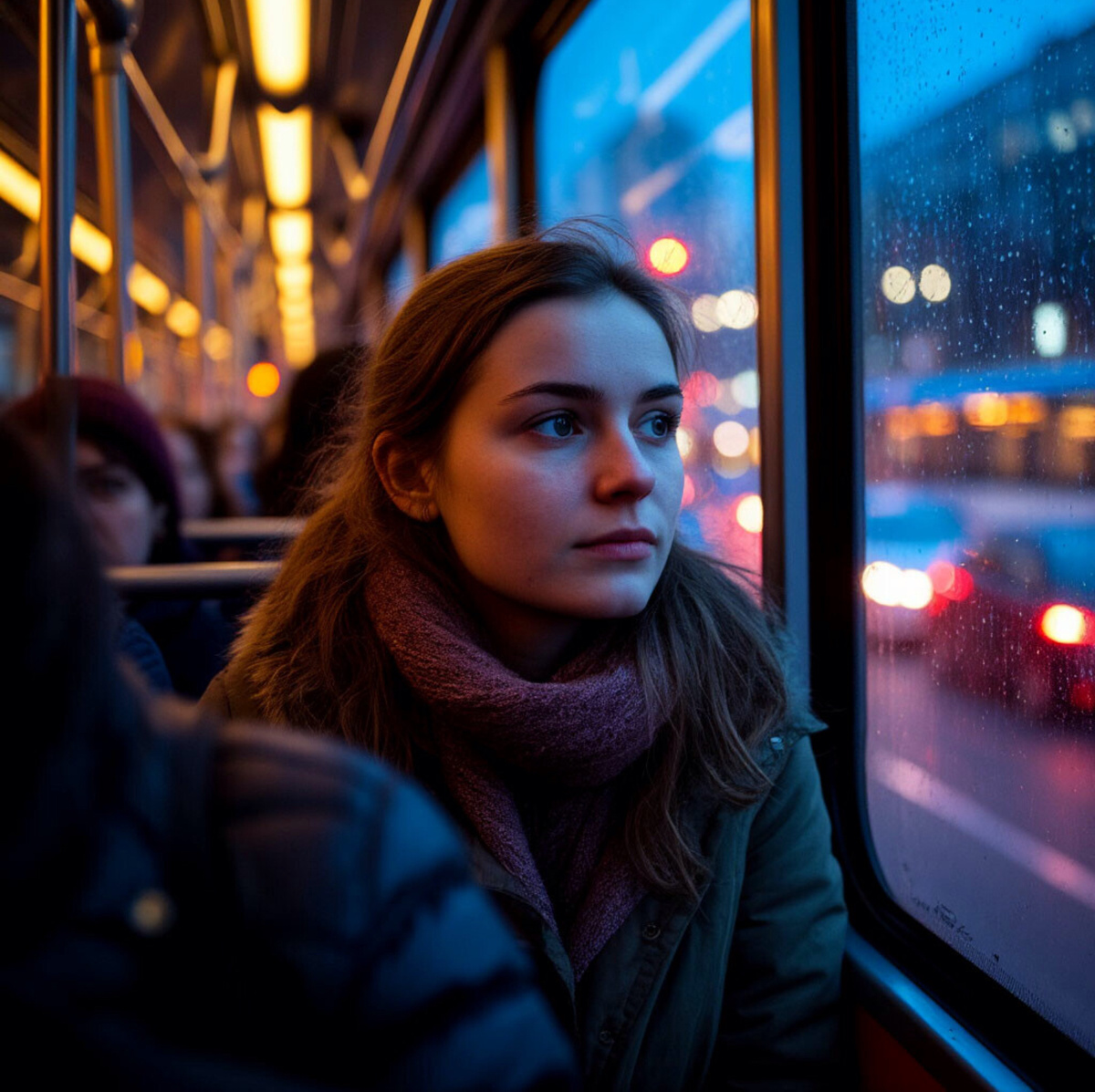 Вечер выдался обычный — если такое вообще бывает на тихой окраине большого города. Волна усталости накатывала на меня в такт убаюкивающему покачиванию автобуса. Знакомый маршрут, знакомые лица: одни и те же пассажиры — каждый в своём уголке, со своими мыслями. Иногда мне казалось, что мы уже родственники по вечерам, хоть ни одного слова не сказали друг другу за годы этих мелких переездов. Всё привычно — кондуктор здоровается кивком, водитель сдержан, будь то жара или снег, люди в полусне, в полумолчании.