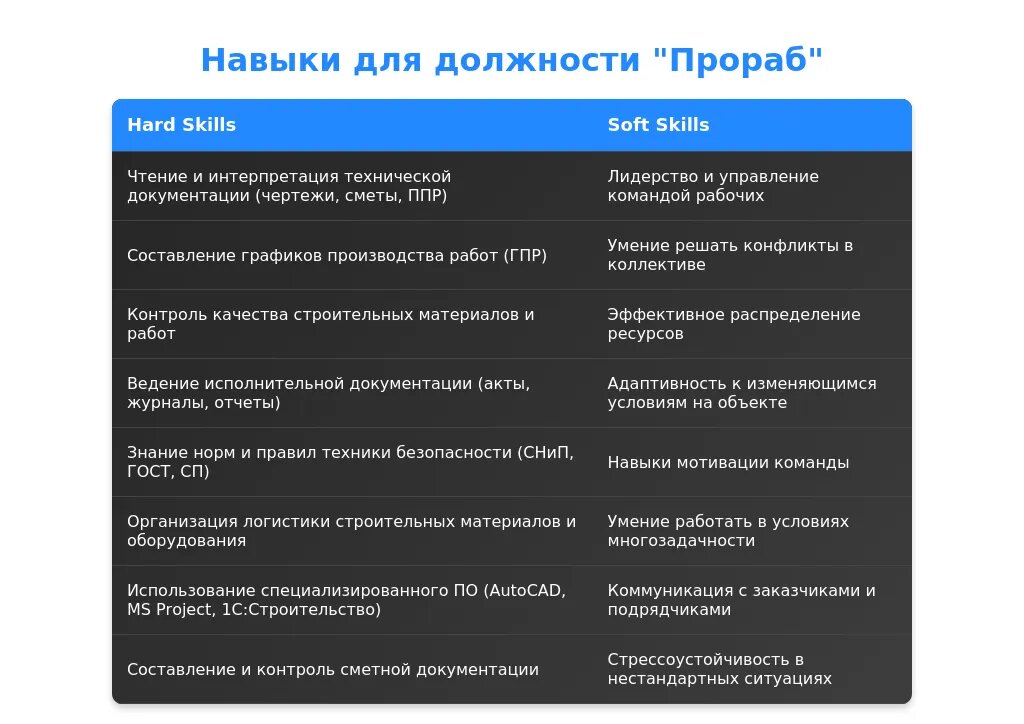 Для опытных прорабов важно показать достижения, профессиональный рост и специализацию.