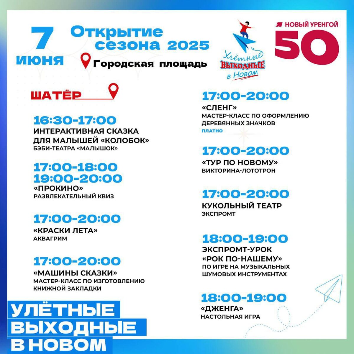 ✨ Начинаем лето с «Улётных выходных»! Ориентируйтесь на нашу афишу в карточках. Мастер-классы, фотоквест, аквагрим и много-много музыки! Хедлайнер — рок-группа «Маша и Медведи». Планируйте выходные с нами в #НУР_юбилей50 и #Юбилей_для_людей. До встречи! ❤️ НУР. Официально