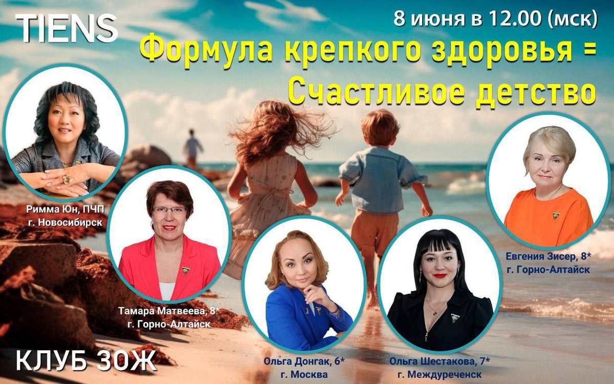 ⛩️ФОРМУЛА КРЕПКОГО ЗДОРОВЬЯ = СЧАСТЛИВОЕ ДЕТСТВО! ⚡Приглашаем вас на открытый вебинар от Системы обучения России Компании TIENS 💥8 июня в 12.00 мск ⚡Ведущие — эксперты здоровья и лидеры Компании: 🌟Римма Юн ПЧП г. Новосибирск 🌟Евгения Зисер 8* г. Горно Алтайск 🌟Матвеева Тамара 8* г. Горно Алтайск 🌟Ольга Шестакова 7* г. Междуреченск 🌟Ольга Донгак 6* г. Москва Вы узнаете: ✅Удивительные результаты по применению продукции для детского здоровья. ✅ Практические советы по питанию и образу жизни детей в летний период ✅Рекомендации от специалистов по сохранению здоровья вашего ребенка. Эта встреча для всех — клиентов, дистрибьюторов и тех, кто только начинает свой путь к здоровью! Вход по ссылке: https://pruffme.com/landing/u173871/healthy_lifestyle Приглашайте друзей! Это шанс сделать жизнь ваших детей по-настоящему счастливой!