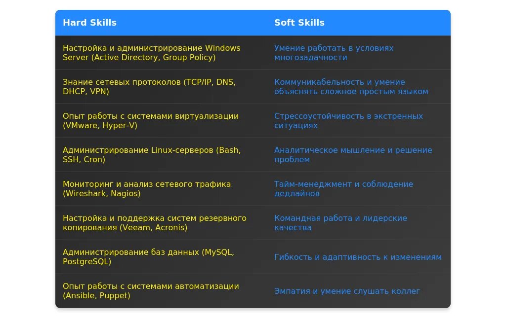 При анализе вакансии для профессии "Системный администратор" важно выделить ключевые требования, которые разделяются на обязательные и желательные. В первую очередь обращайте внимание на технические навыки, такие как знание операционных систем (Windows, Linux), сетевых протоколов, виртуализации (VMware, Hyper-V), а также опыт работы с базами данных и системами мониторинга. Обязательные требования обычно включают конкретные технологии, которые работодатель использует в своей инфраструктуре.