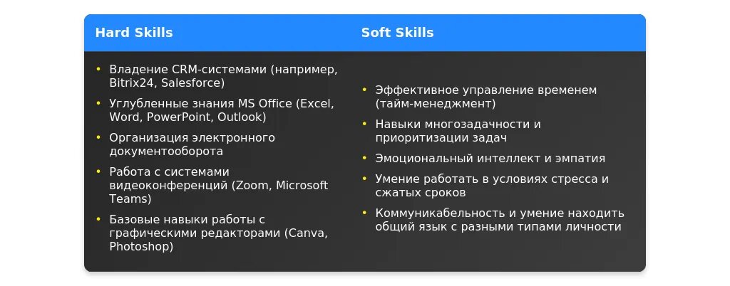После адаптации: "Владение MS Office (Word, Excel, PowerPoint), навыки работы с CRM-системами (Bitrix24)."