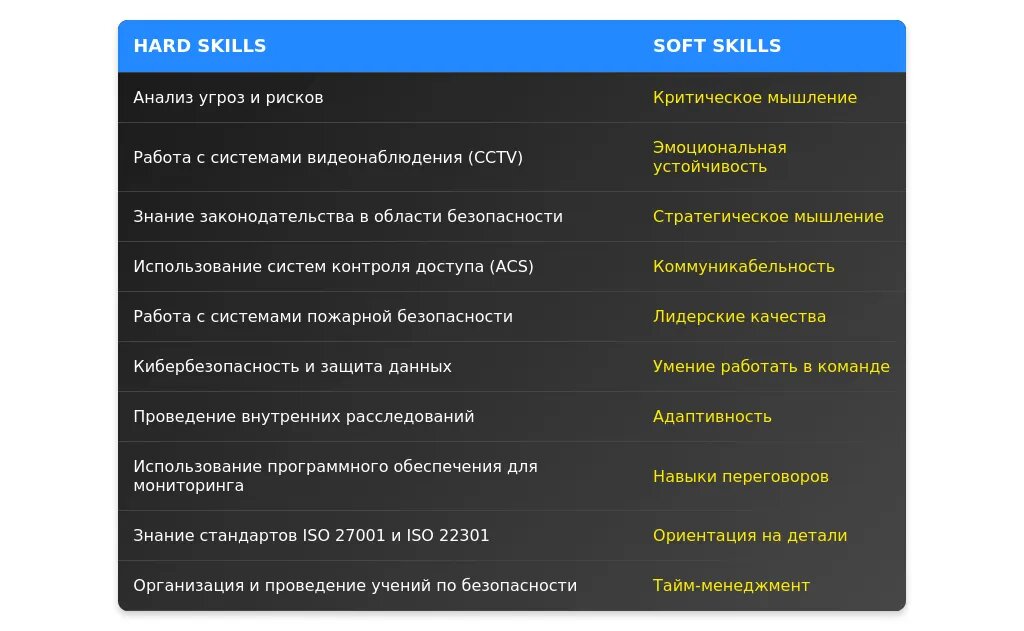 - Перечень востребованных навыков для специалиста службы безопасности;