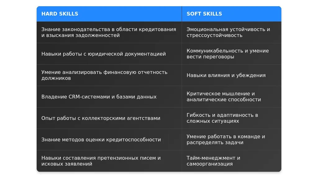 Анализ требований вакансии для профессии "Специалист по взысканию задолженности"