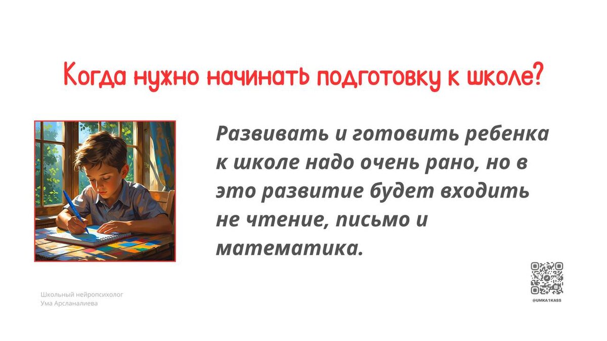 Самый волнующий вопрос родителей: В каком возрасте начать готовить ребенка к школе. К школе - с рождения! А к обучению - после 5 лет! ✔️Радует, что сегодня многие родители более осознанные и понимают, что не стоит ребенка рано учить читать и писать. Поговорим сегодня почему не стоит обучать рано. 🔴Мозг, все его структуры и отделы - развиваются постепенно, последовательно. 🔴Если рано начать обучать ребенка чтению, математике или письму, то мы задействуем те отделы головного мозга, которые еще неполноценно сформировались физиологически. А это приведет к возникновению дефицитов в других областях развития. Подготовить ребенка к школе - не значит научить читать и писать. ☑️Эти навыки можно полноценно осваивать после 5-6 лет. А до 5 лет важно готовиться, опираясь на физиологию, этапы и последовательность созревания разных структур мозга ребенка. 🔴Когда меня спрашивают - Когда нужно начинать подготовку к школе? Я отвечаю - с рождения! 😊 🔴Но в эту подготовку будет входить не чт