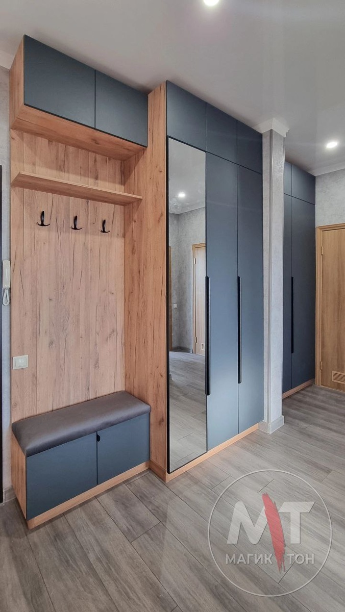 💥💥💥Стильная прихожая ( двушка МОНОЛИТ)💥💥💥 Данная прихожая, воплощает собой идеальное сочетание функциональности и практичности. В ней гармонично соединены элементы графита и рыжего дерева, которые, создают уникальный визуальный эффект. Чёрная фурнитура и зеркала в черной раме добавляют нотку совершенства, подчеркивая современный дизайн и высокий уровень исполнения. Каждая деталь прихожей безупречно продумана: дверцы и ящики оснащены доводчиками, что обеспечивает плавное и тихое закрытие, а значит, удобство в использовании 👏👏👏. Яркое сочетание материалов и цветов делает данную прихожую не только стильной, но и способной служить важным элементом вдохновения в интерьере любого современного дома. ИДЕАЛЬНО!!! Фото отчет прилагаем, ждем ваших комментариев и ❤ Были использованы материалы: ✅внутреннее наполнение ЛДСП дуб крафт золотой ✅фасад мдф монолит железно серый ✅ручки/крючки черные ✅антресоли без ручек с системой Pushopen (открывание двери при нажатии) ✅СЕРОЕ зеркало с про