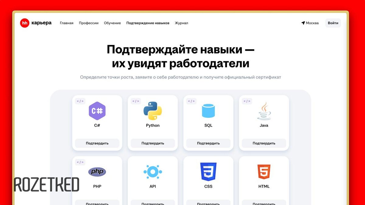 Минцифры и hh запустили платформу оценки IT-навыков В системе подтверждения IT-компетенций доступно 17 тестов на знание языков программирования (Python, Java, C#, PHP, JavaScript) и других компетенций. Проверяются как теоретические знания, так и практические навыки. Задания обещают обновлять регулярно под потребности рынка. Для IT-специалистов это простой способ выделиться среди конкурентов. А работодатели смогут убедиться в навыках ещё до технического интервью. Тестирование добровольное и бесплатное. Если результат теста не понравился — попробовать свои силы можно будет ещё раз через месяц. rozetked.me/news/39584