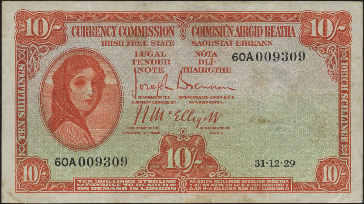 В конце 1922 года закончилась гражданская война в Ирландии. Во время боевых действий на территории зеленого острова погибло более 2000 человек, от 800 до 900 со стороны Британских войск и от 400 до 1000 со стороны Ирландской Республиканской Армии. В результате этой войны Британские войска покинули зеленый остров, а Ирландия получила статус доминиона. Новообразованная страна получила название Ирландское Свободное Государство (Irish Free State). Но не все так просто. По соглашению сторон, Британия же сохранила за собой контроль над шестью самыми развитыми областями (Северная Ирландия (область Ольстер))и право на сохранение военных баз на всей территории Ирландии. Надо ли говорить что экономически Ирландия все равно осталась зависима от Лондона? Даже первые Ирландские фунты были отпечатаны в Англии. Выпущены они были в 1928 году и были привязаны к курсу английского фунта стерлингов. Печатью банкнот занималась знаменитая английская фирма «Уотрелоу и Сыновья» (Waterlow and Sons Limited) вып