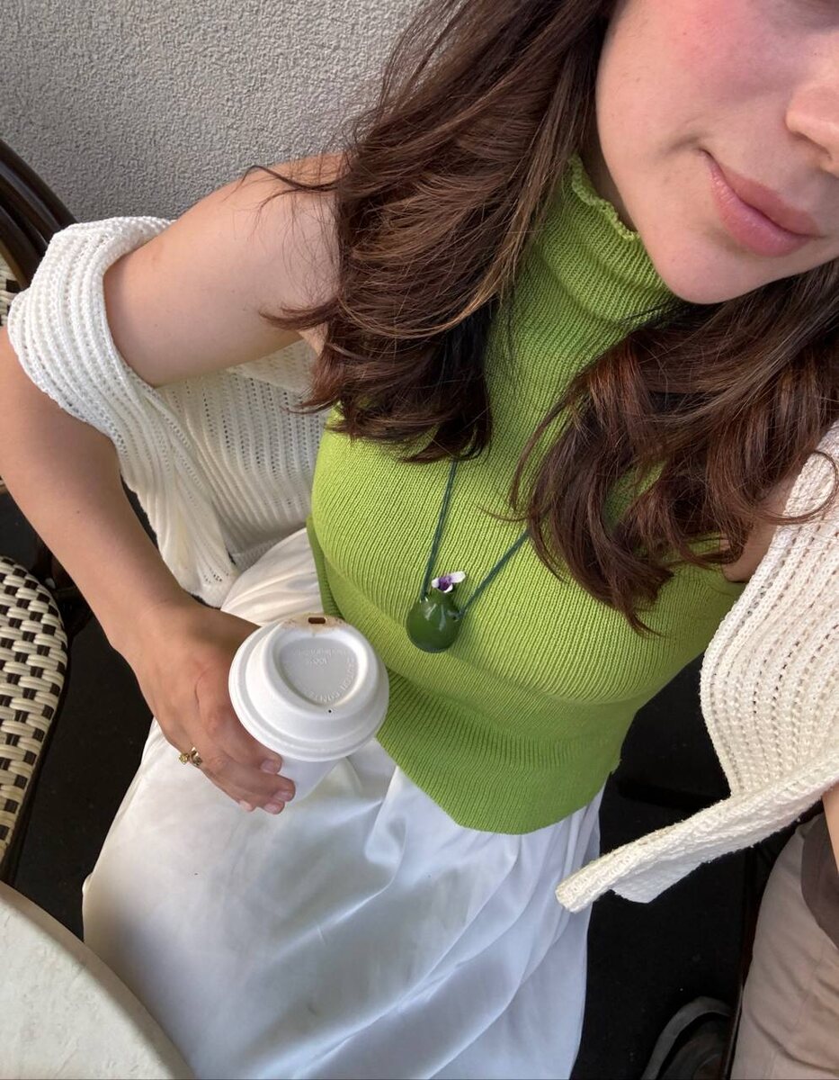 Увидела, что самый топовый по количеству вопросов кулон из моей коллекции снова в наличии 💚 Обожаю этот кулон летом. Он еще и функциональный - ношу подаренный Леоном цветочек в нем 🥹