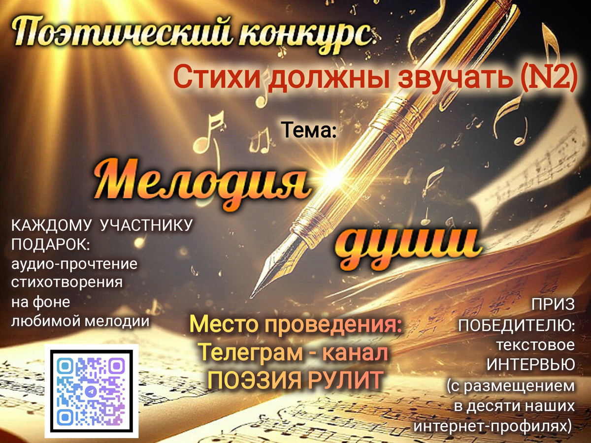Доброго времени! Приглашаем авторов стихотворений присоединиться к красивому, музыкальному и вдохновляющему мероприятию в Телеграм: Поэзия рулит, который будет проходить с 7 по 14 июня. Наша творческая гостья, чтец поэтических произведений, Ксения Кирчева озвучит стихи всех участников! Канал Ксении: #стихи #поэзия