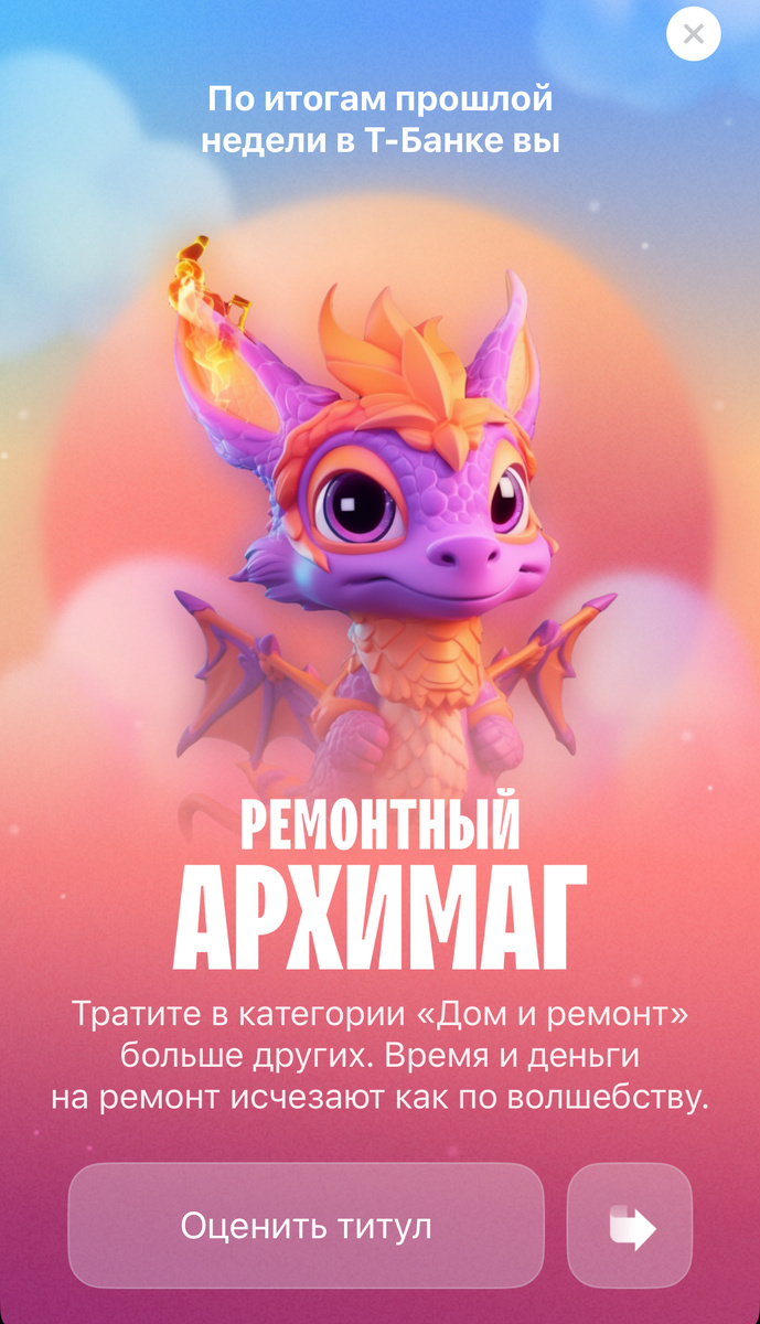 Немного поздновато для итогов, но лучше поздно, чем никогда. Июнь захватил меня косметическим ремонтом в квартире, и оказался он сложнее, чем я ожидала. За мои ремонтные дела и траты Тбанк любя присвоил мне звание Ремонтного Архимага. Итого, траты за май завершились на цифре 136772₽. За первую неделю мая уже потрачено 44547₽. И это ещё не оплачены ЖКХ и автокредит, и ещё надо докупить 4 предмета мебели. Моя наивность, что удастся быстро сделать ремонт просто зашкаливает. За 2 недели ремонтных работ завершена только комната, и при этом в ней отсутствует половина мебели. На май у меня были цели, и не все из них удалось выполнить: В тренажерке я не была уже 2 недели, ровно столько, сколько длится ремонт. Но несмотря на это, 13 из 15 запланированных тренировок я сделала. 2 тренировки буду считать, что компенсированы ремонтом. Тут я дошла до 200 страницы, но пока на этом всё. Полный провал - нет пока времени добраться снова до обучения. Тоже из-за ремонта отложено. Плюсом к тормоз