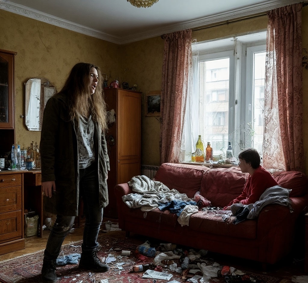 Зоя стояла в дверях своей квартиры, грудь ее тяжело вздымалась от злости . В глазах плескалась ярость, смешанная с отчаянием. Перед ней, посреди разбросанных вещей, стоял ее брат, Андрей. Он выглядел помятым и виноватым.