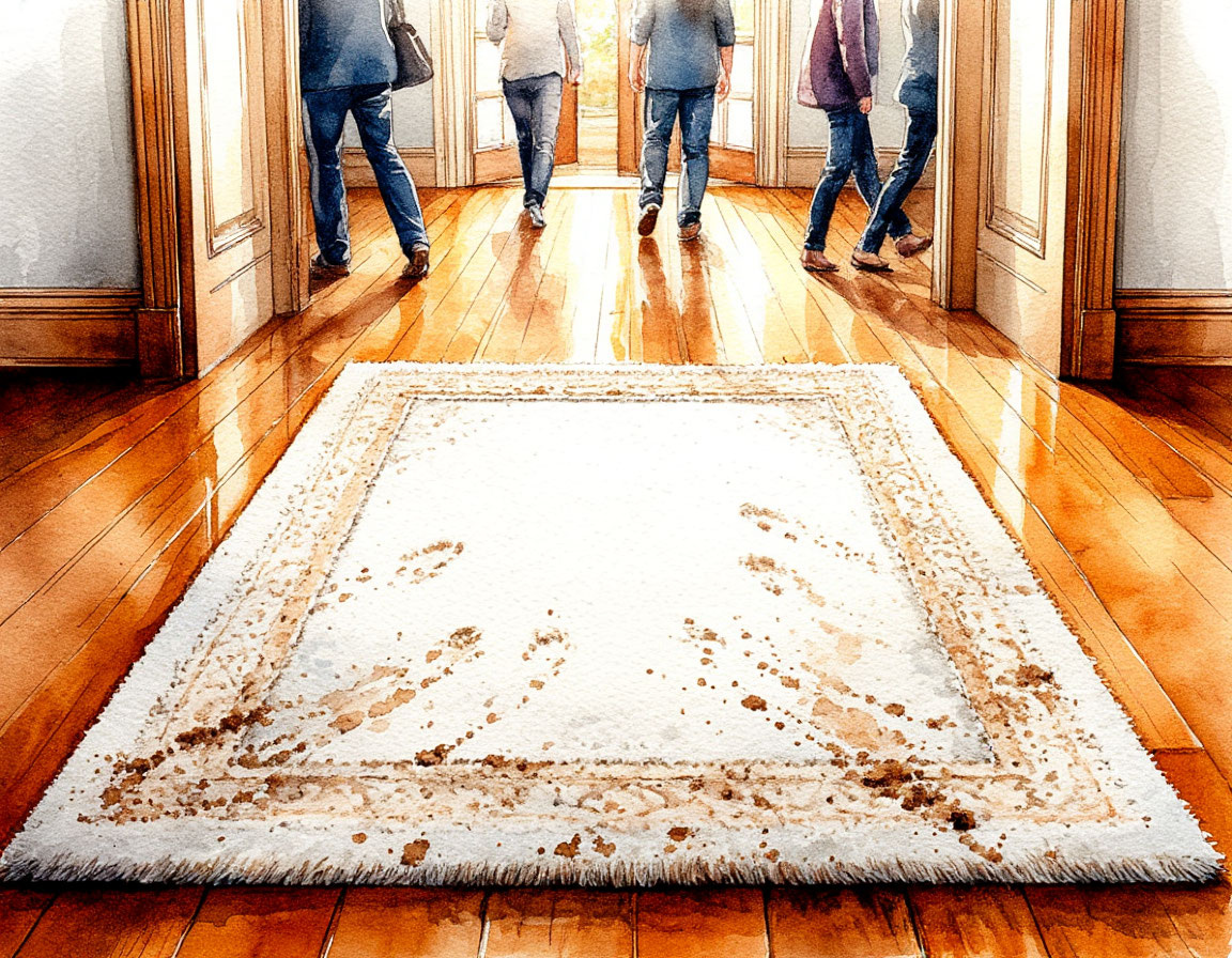В своё время я прочитал статью о теории разбитых окон, которая меня сильно впечатлила. В то же время я вспомнил об одном интересном эксперименте, который видел по кабельному ТВ ещё в 90-х годах. Этот эксперимент ярко демонстрирует, как часто мы, люди, действуем не по своим принципам, а под влиянием окружающих. Называется это «эффект белого ковра», хотя широкой известности он, конечно, не получил. Смысл его в том, насколько легко можно повлиять на социальное поведение группы людей, просто создав определённый первоначальный контекст. Представьте большой зал с двумя выходами — вход с одной стороны, выход с другой. Посередине, ни с того ни с сего, появляется красивый белоснежный ковёр. Дорогой, пушистый, с длинным ворсом. Проходя через этот зал каждый день, люди привыкли просто идти напрямик, но теперь там лежит чистота и совершенство. И вот утром первый человек заходит в зал — женщина, сотрудница офиса. Она останавливается, смотрит на ковёр, немного задумывается и решает его обойти, пройд