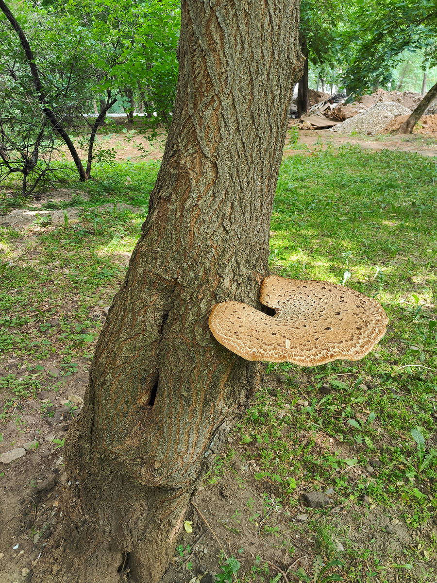 Посмотрите, какое чудовище я нашла прямо рядом с нашим домом! Мимо торца дома проходит дорожка, по которой я регулярно хожу в магазин. В понедельник его ещё не было, или, может быть, он был настолько мал, что я его не заметила. А в четверг он уже стал таким огромным! Внешне похож на большую свинушку, только шляпка не круглая, а полумесяцем. Ножка короткая, толстая. Грибы-паразиты, вырастающие на деревьях, губят своих хозяев. То, что мы видим на стволе дерева - это плодовое тело. Это итог развития всего грибного организма. А внутри ствола находятся "корни" - гифы, которые пронизали древесину на многие метры вверх и и вниз. Дерево уже не спасёшь, рано или поздно оно всё равно погибнет. Но сам гриб нужно удалить обязательно, потому что, когда он созреет, из него высыпятся споры и разнесутся ветром, заражая окрестные деревья. Гриб вырос на клёне американском. Сам по себе клён не жалко, это дерево-сорняк. А вот спасти другие деревья - это задача каждого неравнодушного человека. Конечно,